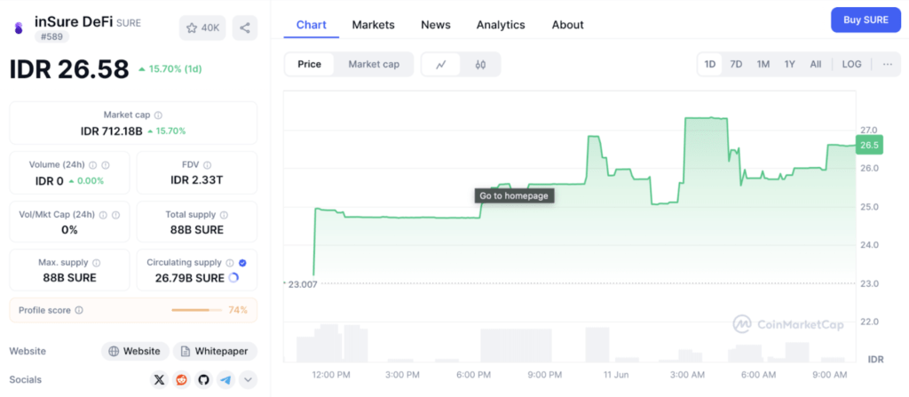 1. inSure DeFi (SURE) – Lonjakan 26% dalam 24 Jam