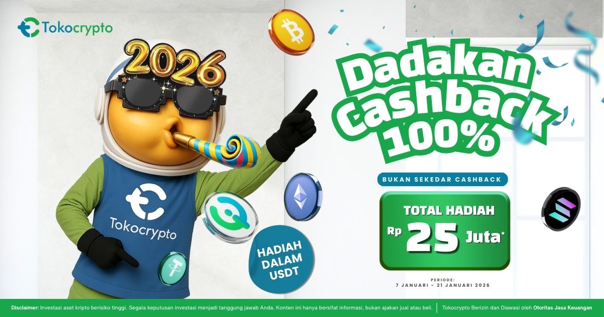 Tahun baru dapatkan cashback seru dari Tokocrypto. Baca ketentuannya di sini.