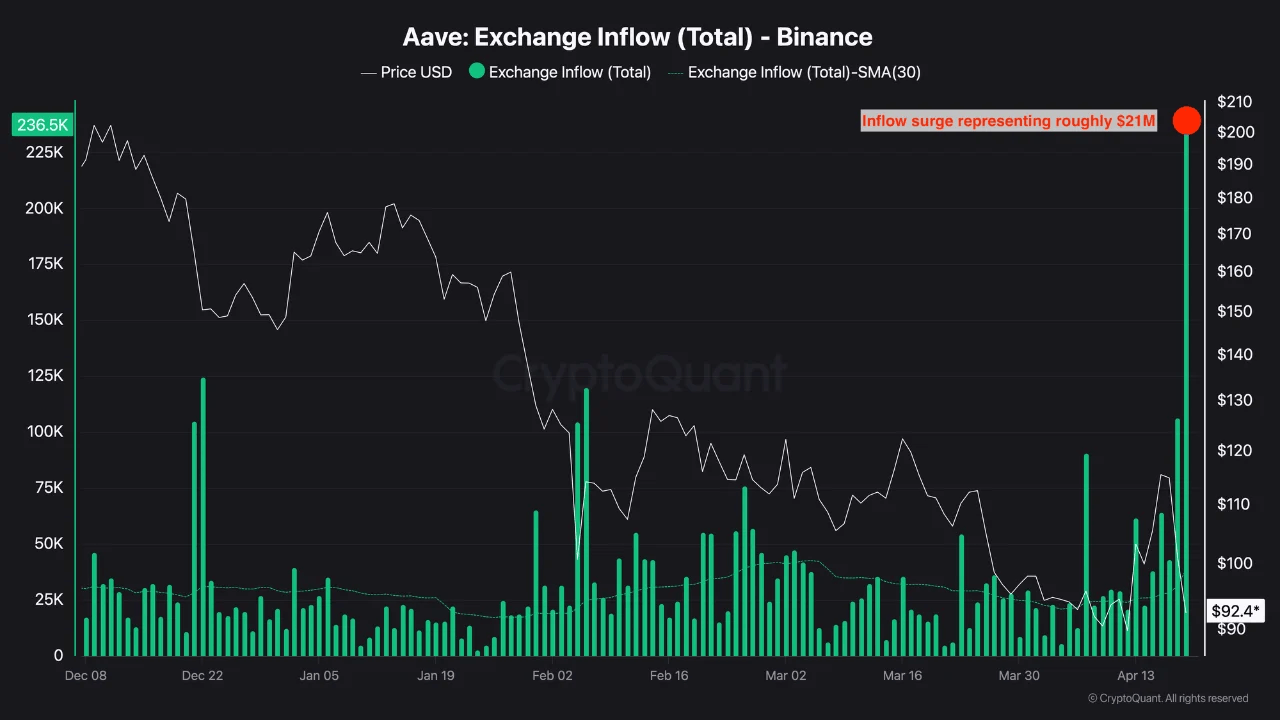 Data menunjukkan bahwa lebih dari 236 ribu AAVE mengalir ke Binance, jauh di atas rata-rata bulanan yang hanya sekitar 31 ribu AAVE.