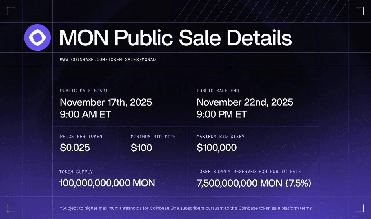 Monad baru saja melakukan Initial Coin Offering (ICO) untuk tokennya pada tanggal 22 November 2025 dan berhasil TGE (Token Generation Event) pada 24 November 2025.