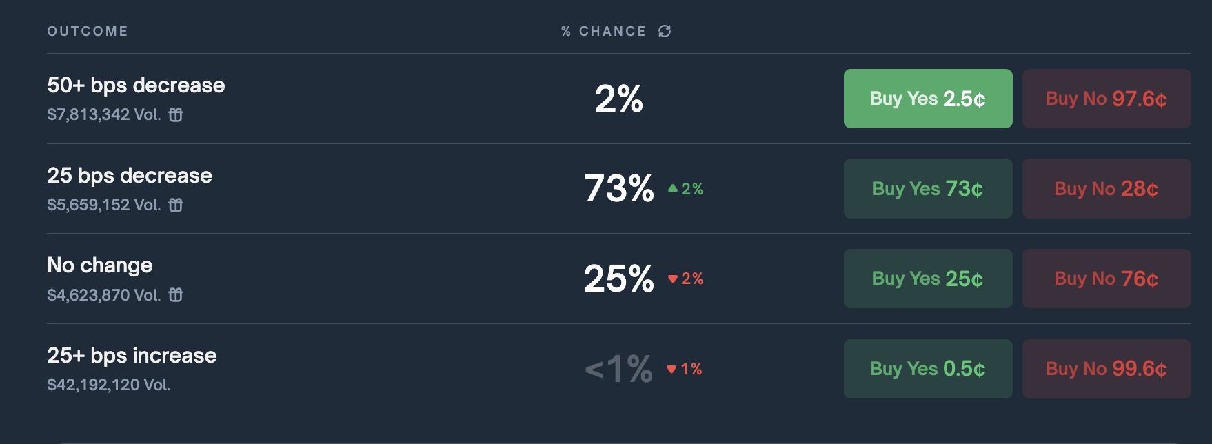 Setelah itu pengguna diharuskan memilih apa keputusan the FED yang akan keluar nantinya, misal ketika pengguna memilih pemotongan suku bunga 50bps dan chance tersebut semakin tinggi seiring waktu, maka pengguna bisa menjual dengan harga tinggi, dan ketika benar-benar diumumkan dengan hasil demikian, maka pengguna dapat menikmati hasil dari multiplier tertentu.