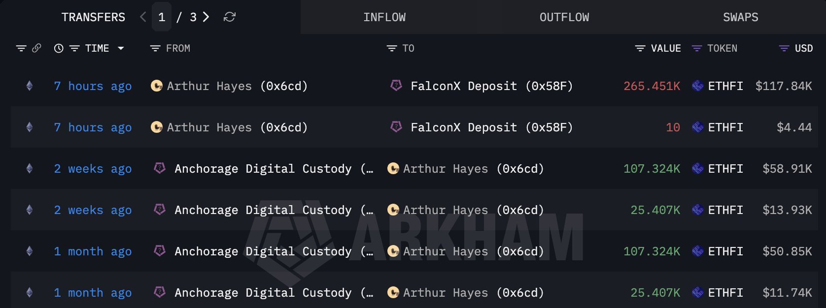 Di sisi lain, data on-chain menunjukkan bahwa Hayes justru menjual dua aset kripto, yaitu ETHFI dan AUKI. Berdasarkan laporan, ia membeli ETHFI di harga yang relatif tinggi, namun menjualnya kembali di harga lebih rendah, sehingga mencatat kerugian sekitar 13%.