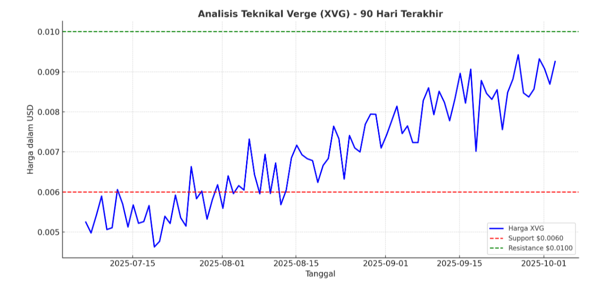 Seandainya Verge mampu menembus resistensi $0.0100, harga berpotensi menuju $0.0150 – $0.0200 dalam jangka pendek.