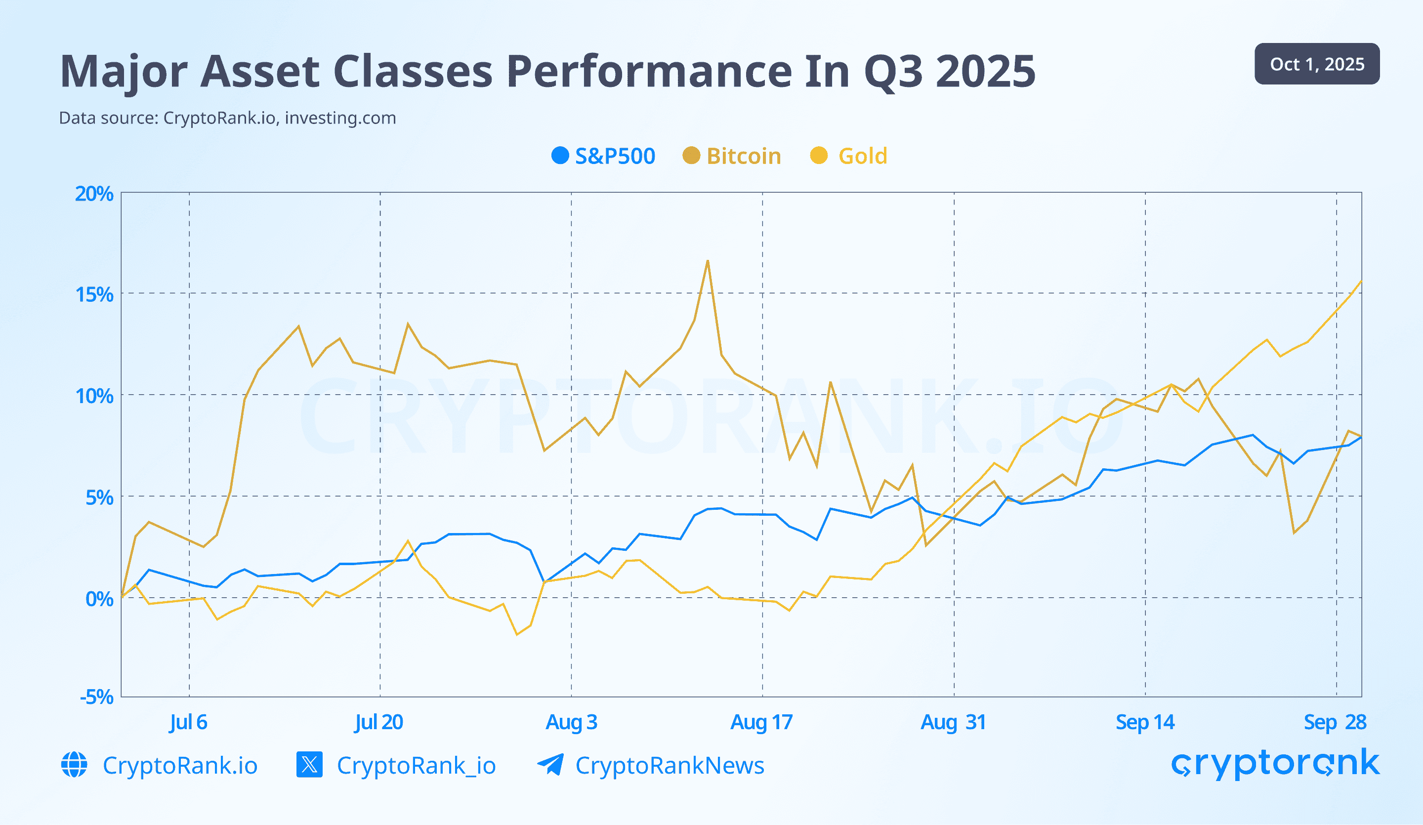 Bitcoin (BTC) menembus all-time high di US$124.000, didorong oleh pemangkasan suku bunga The Fed dan lonjakan arus dana ETF institusional. Menariknya, performa BTC mengungguli S&P 500 dan bahkan emas—dua aset defensif utama dunia. Lonjakan ini menandai rotasi besar dalam pasar global, di mana investor kembali ke kripto sebagai aset unggulan di tengah perubahan kebijakan moneter.