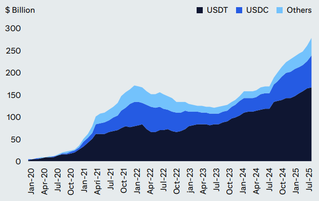 Pasokan stablecoin global melonjak ke US$280 miliar pada September 2025. Fenomena ini dijuluki “Stablecoin Summer”, era di mana stablecoin menjadi tulang punggung perdagangan, DeFi, dan pembayaran dunia nyata.
