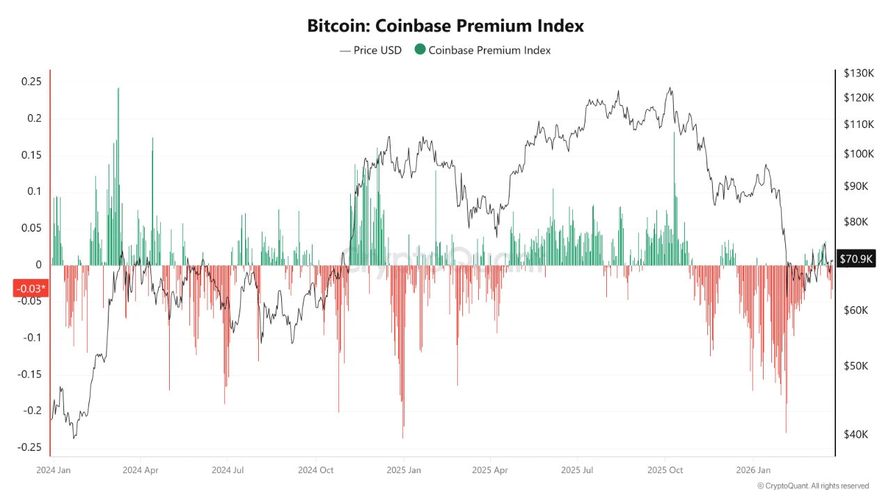Data on-chain turut menguatkan kondisi ini, di mana Coinbase Premium yang tidak stabil menunjukkan bahwa permintaan spot, khususnya dari pasar Amerika Serikat, belum pulih secara merata.