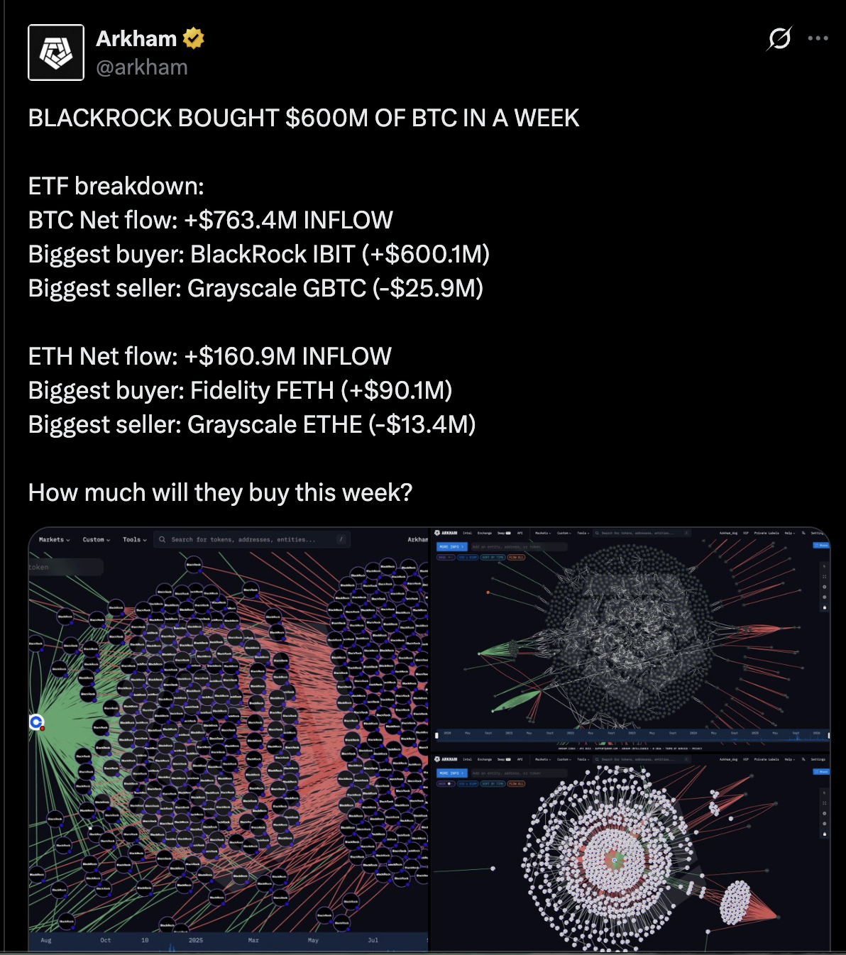 Dari jumlah tersebut, produk iShares Bitcoin Trust (IBIT) milik BlackRock menyumbang sekitar US$600,1 juta atau lebih dari 78% total arus masuk.