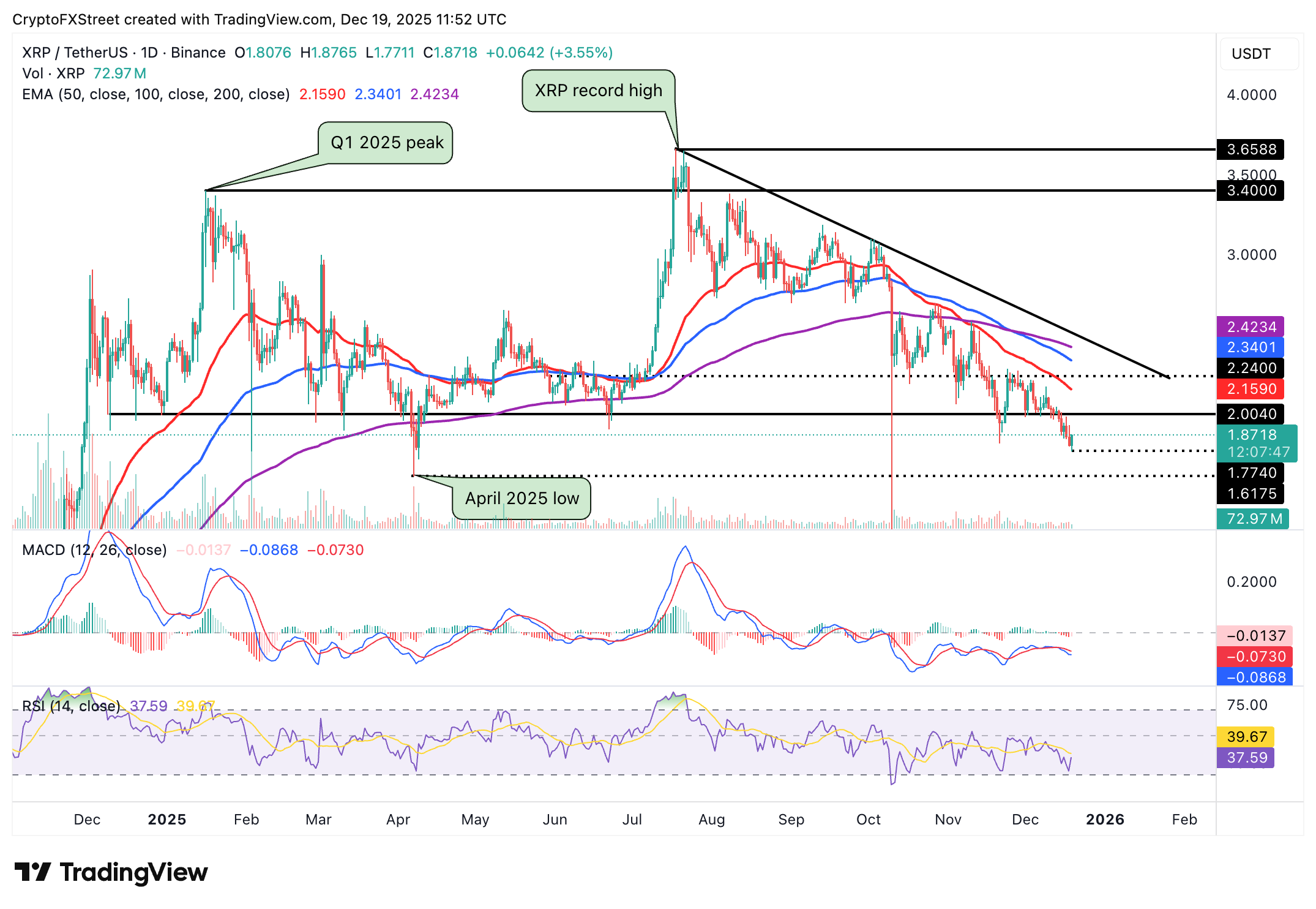 Dari sisi teknikal, XRP masih menghadapi tantangan. Indikator Relative Strength Index (RSI) harian berada di level 37 dan mulai bergerak naik. Jika RSI mampu mendekati level netral 50, prospek bullish jangka pendek dinilai akan menguat dan membuka peluang penembusan di atas US$2,00.