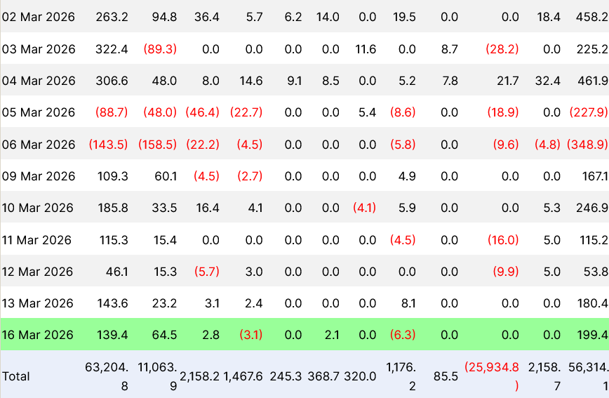 Secara total, sejak 9 Maret, inflow ETF Bitcoin telah mencapai sekitar US$962,8 juta.