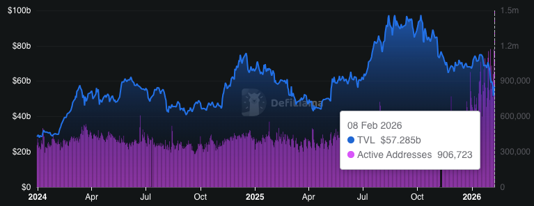 Data On-Chain Stabil: TVL $57,28 Miliar dan 906.700 Alamat Aktif