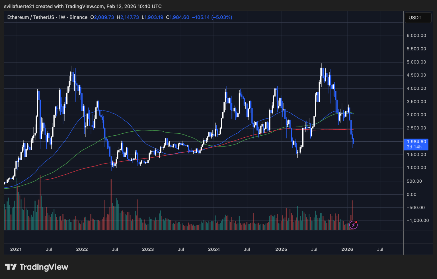 Dari sisi teknikal, Ethereum kini berada di bawah level $2.000 yang sebelumnya menjadi support penting sekaligus level psikologis utama. Kegagalan merebut kembali area ini memperkuat sinyal melemahnya momentum bullish.