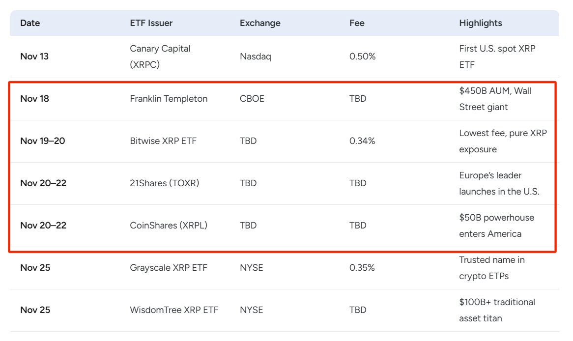 Tidak hanya itu, tiga produk tambahan juga berpotensi menyusul minggu depan. Jika semua terealisasi, November bisa menjadi salah satu bulan paling bersejarah bagi XRP sejak reli besar 2017.