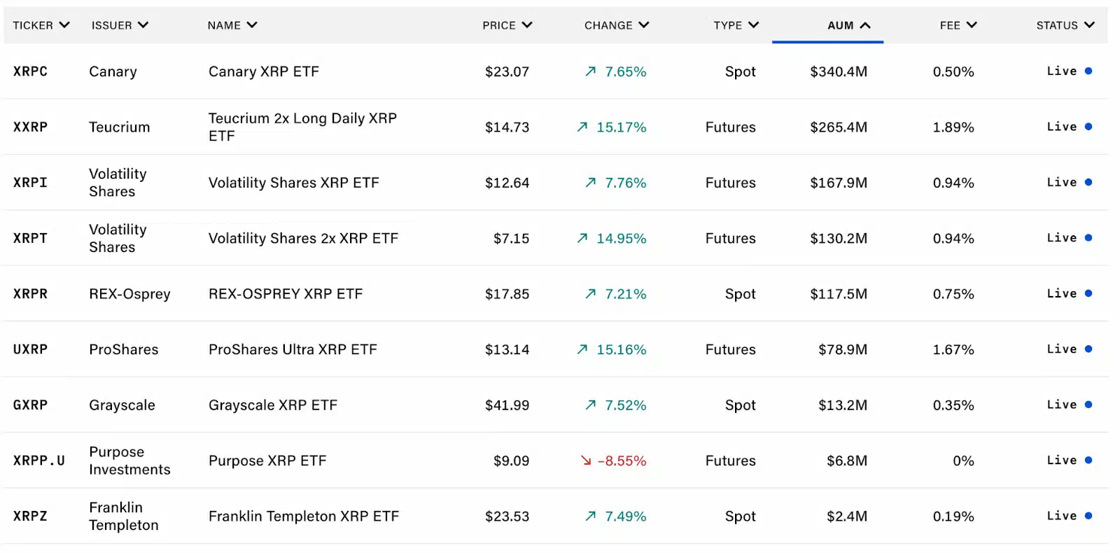 Perusahaan investasi CoinShares membatalkan rencana meluncurkan ETF XRP di Amerika Serikat karena belum adanya kejelasan regulasi dari SEC. Meskipun demikian, sembilan produk XRP exchange-traded yang telah beredar di pasar global mencatatkan US$1,1 miliar aset kelolaan (AUM).