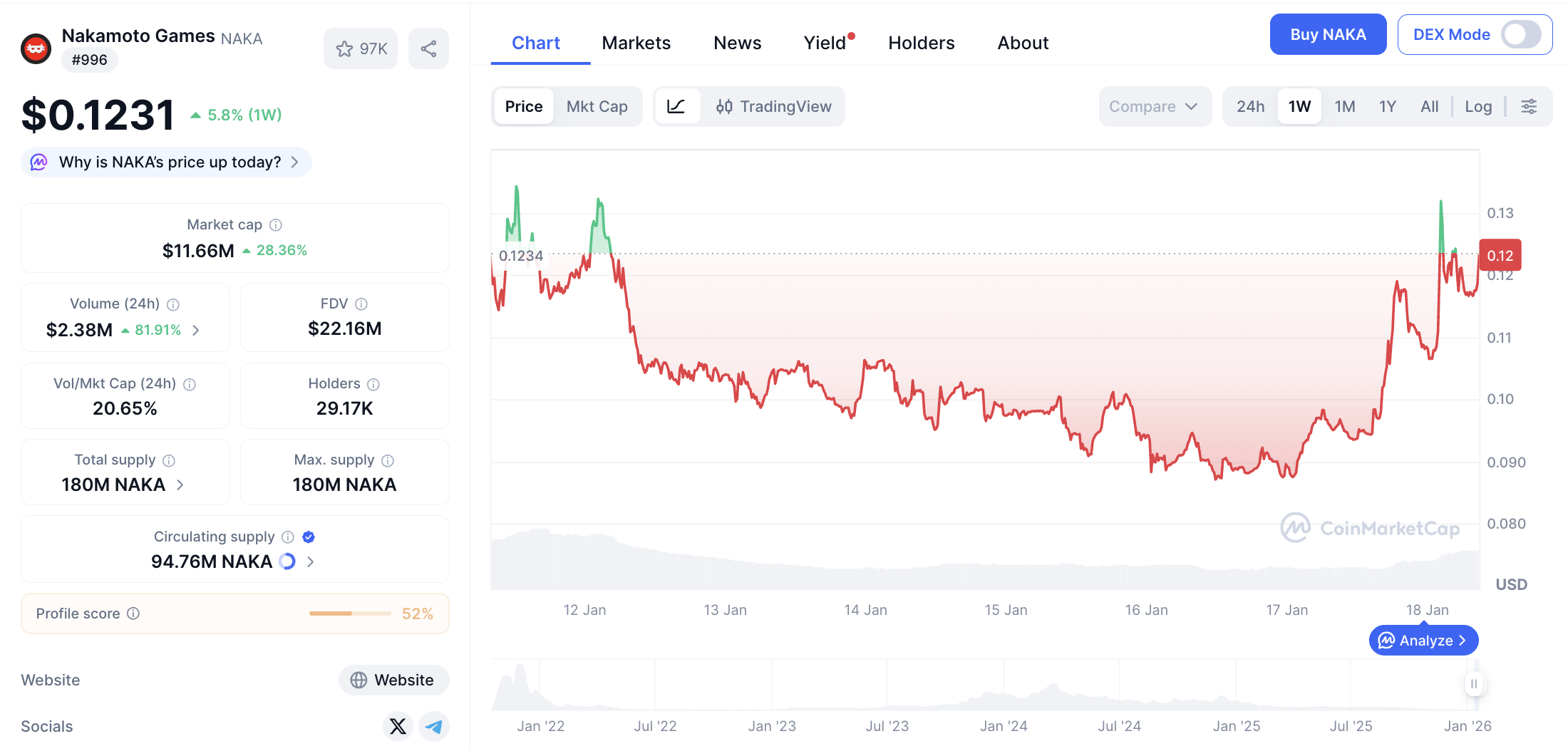 3. Nakamoto Games (NAKA) Bertahan di Jajaran Top 3
