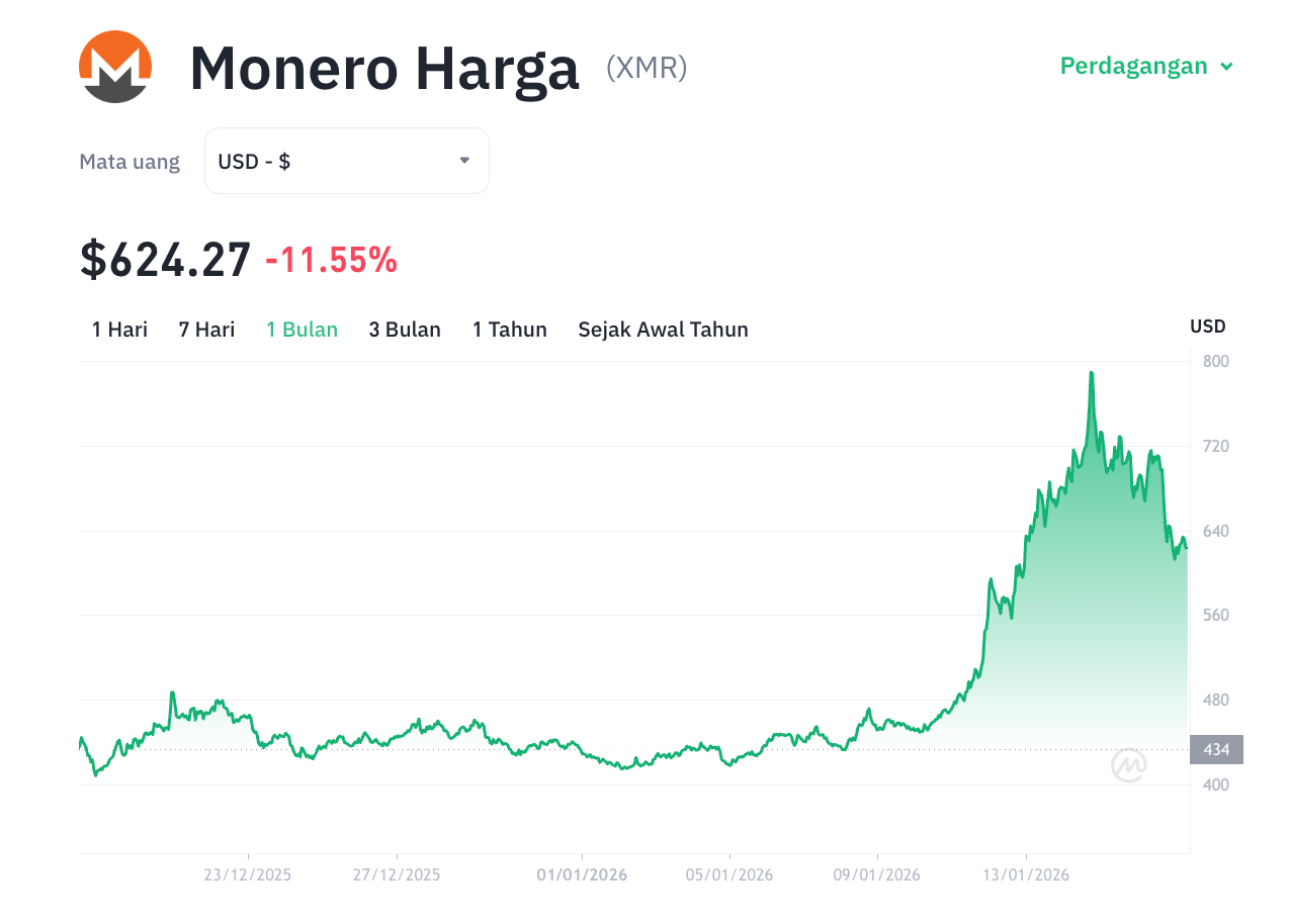 Banyak investor kripto di sosial media seperti X menyebut bahwa Monero kembali merebut tahta privacy coin dari Zcash, ditandai dengan kenaikan lebih dari 50% dalam delapan hari.