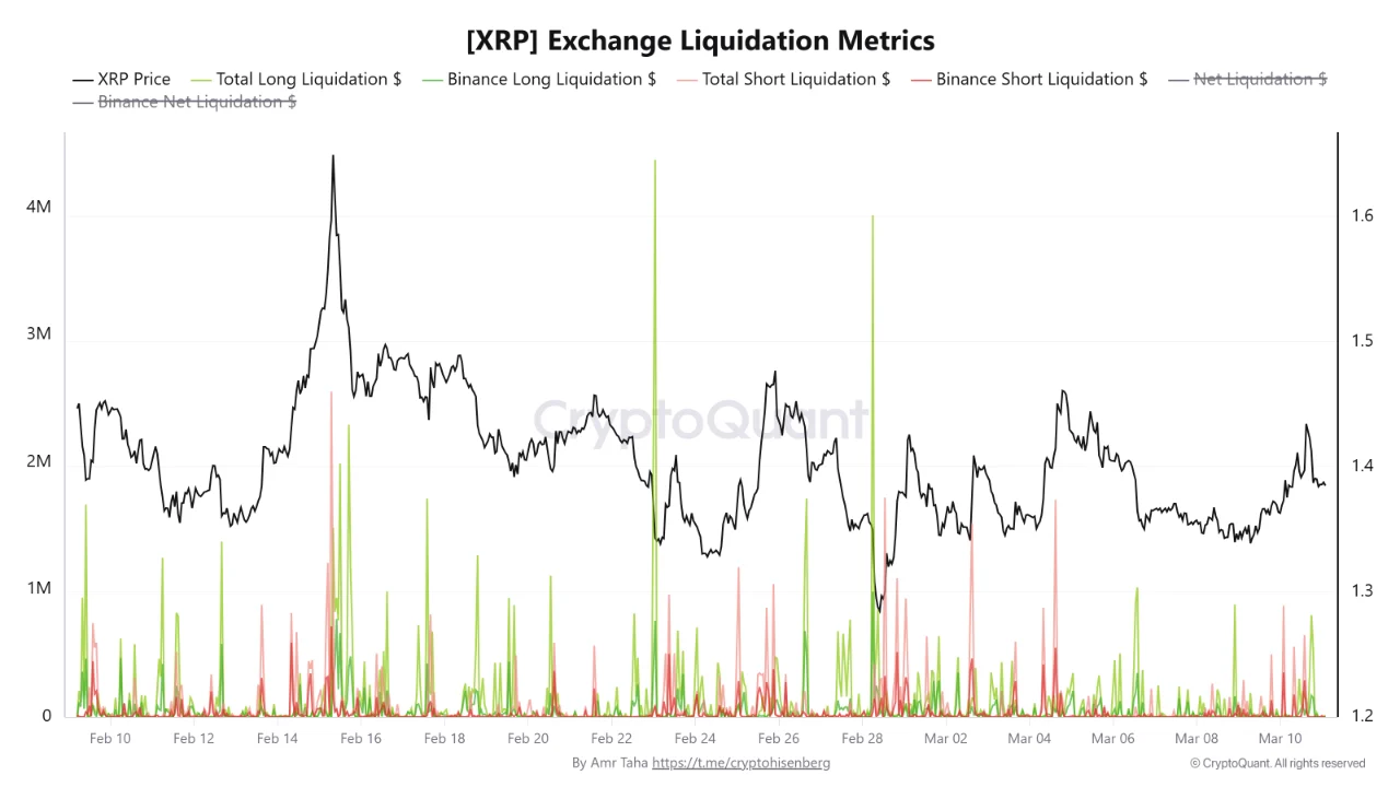 Kombinasi antara penurunan open interest dan dominasi likuidasi long menunjukkan bahwa pasar derivatif XRP sedang bergerak menuju lingkungan dengan leverage yang lebih rendah.