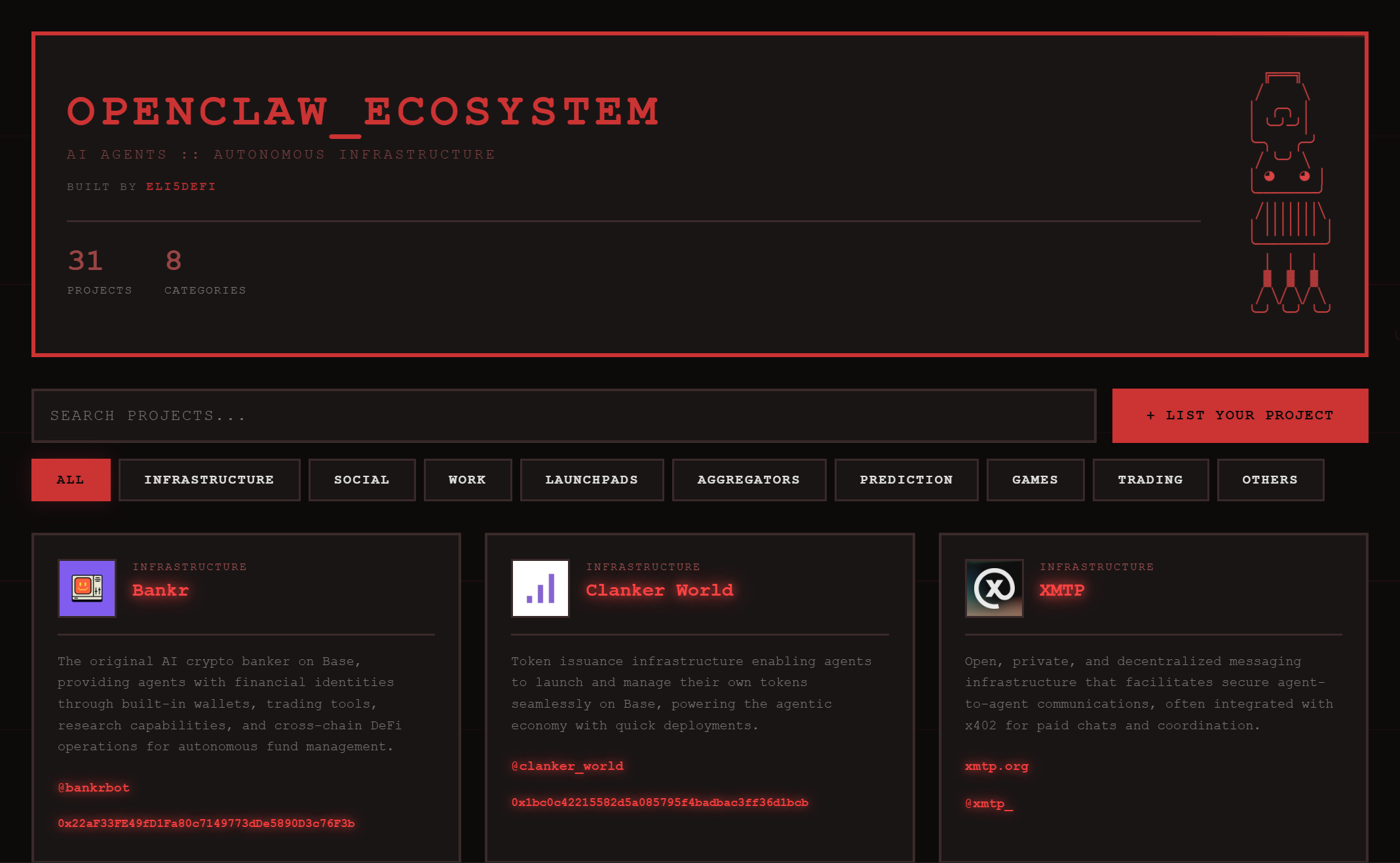 Dalam ekosistem crypto, OpenClaw mulai berperan sebagai agent otonom. Di sisi infrastruktur, OpenClaw dapat memiliki identitas finansial dan beroperasi langsung di blockchain seperti Bankr dan XMTP. Dalam aspek ekonomi agent, OpenClaw dapat bekerja, menawarkan jasa, dan memperoleh imbalan secara on-chain melalui konsep seperti OpenWork. Sementara di sisi trading dan strategi pasar, OpenClaw dapat berinteraksi langsung dengan protokol seperti DefinitiveFi dan ClawdX.