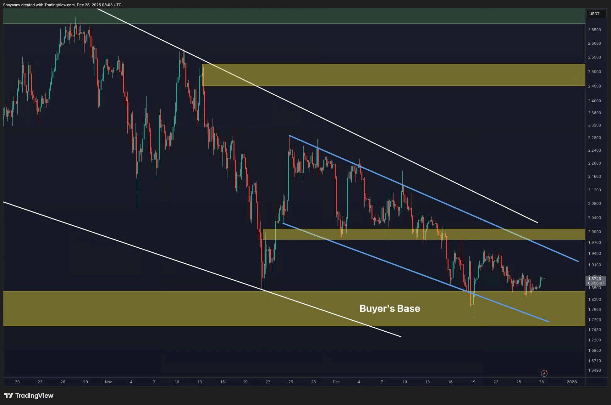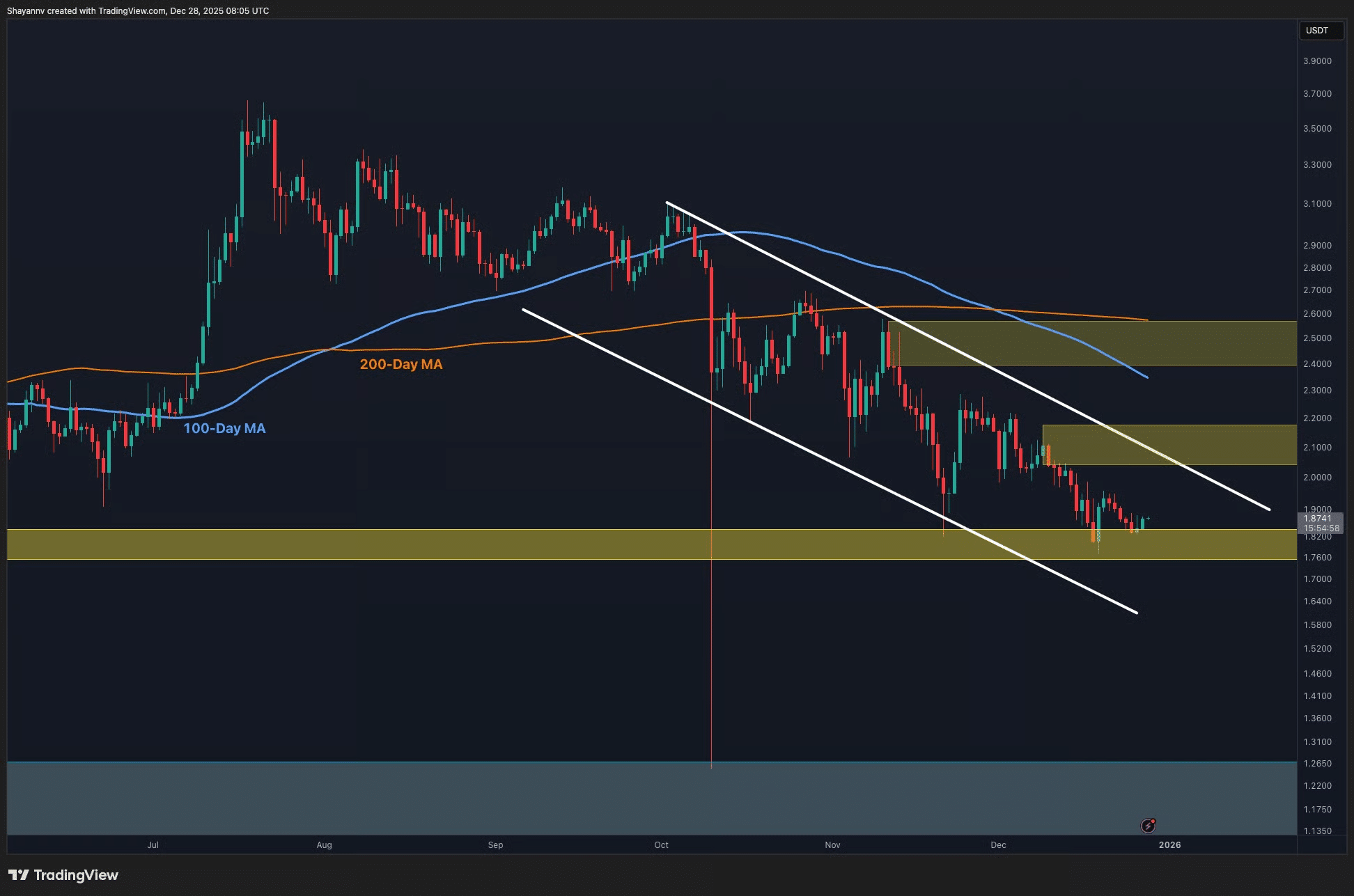 Berdasarkan analisis pasar yang dipublikasikan Shayan Markets pada 28 Desember 2025, struktur harga XRP tetap bearish selama belum mampu merebut kembali level kunci tertentu.