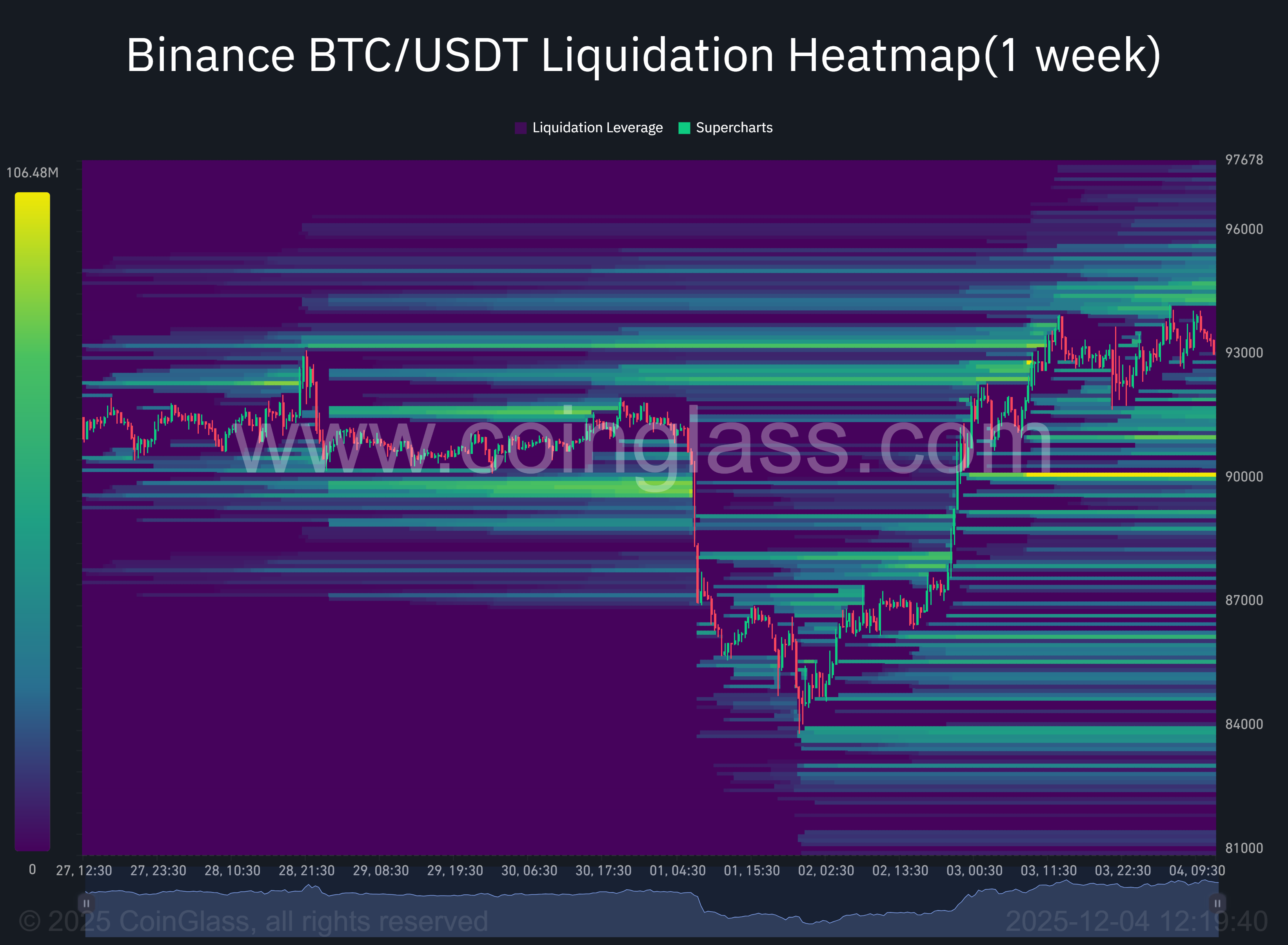 - Zona $94.000 – $95.000 โ Menjadi resistance dengan likuidasi short terpadat saat ini.