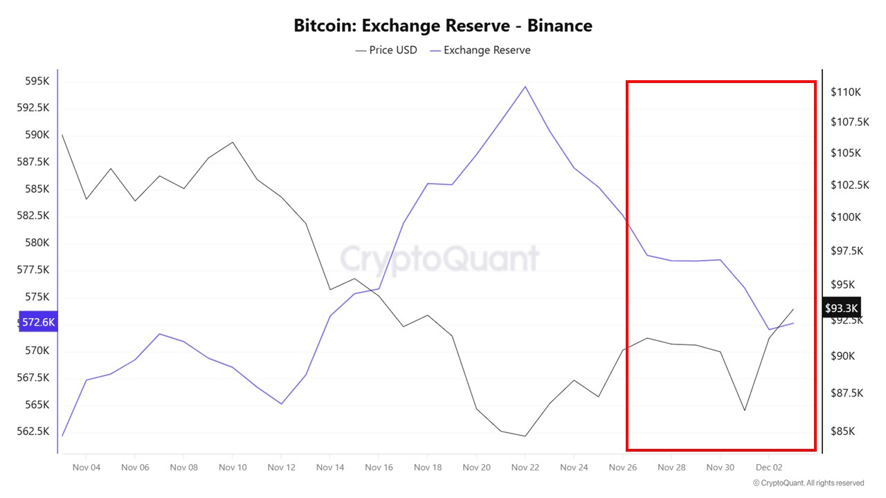 - Tren Penarikan Berkelanjutan ๐ค Area merah menunjukkan tren penurunan cadangan yang konsisten sejak akhir November. Ini menandakan bahwa alih-alih menjual di level $93k, investor lebih memilih untuk memindahkan aset mereka keluar dari bursa.