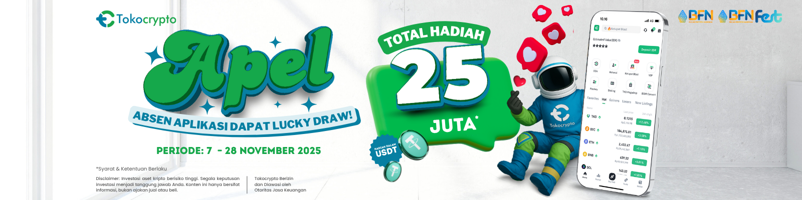 Tokocrypto meluncurkan program APEL dengan hadiah total Rp25.000.000, dengan lebih dari 500 pemenang.