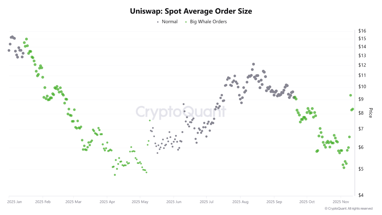 Berkat proposal “UNIfication” Uniswap yang bertujuan mengaktifkan biaya protokol untuk membakar (burn) token UNI. Data on-chain Cryptoquant menunjukkan adanya peningkatan pesanan whale yang mengindikasikan potensi akumulasi.