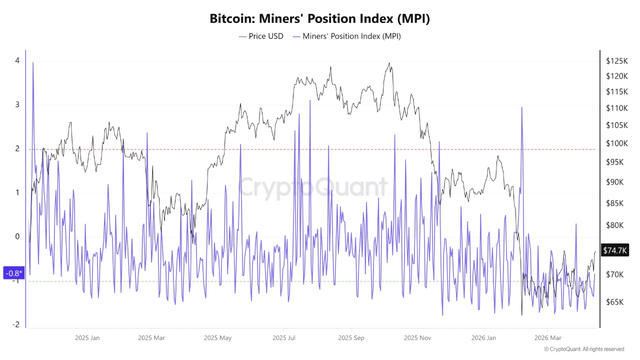 - Minimnya Distribusi Pasokan: Di tengah harga BTC yang diperdagangkan kokoh di sekitar US$74.000, rendahnya pergerakan MPI membuktikan bahwa pasar tidak sedang dibanjiri pasokan baru yang biasanya digunakan miner untuk merealisasikan keuntungan (take profit).