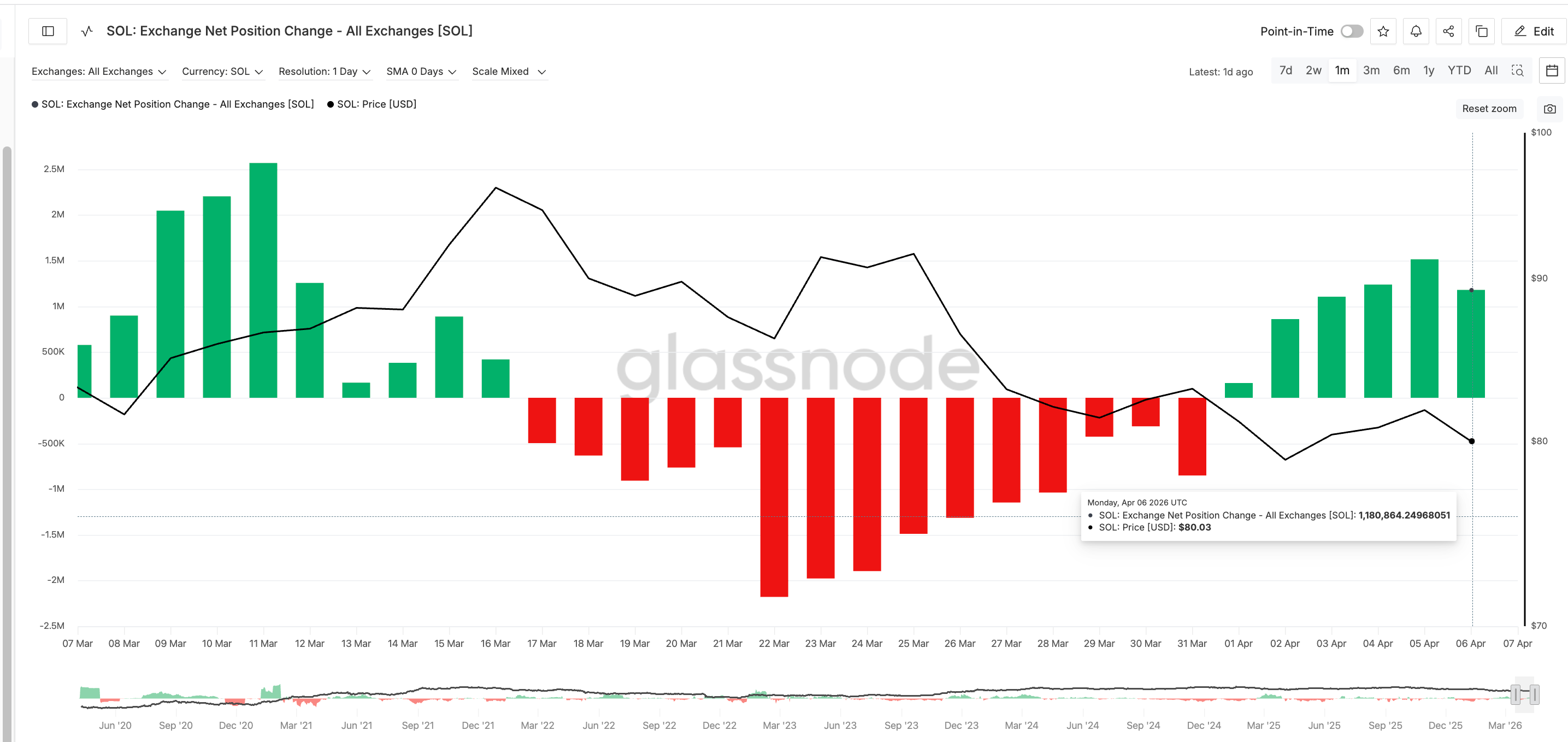 Posisi on-chain Solana berbalik tajam dari akumulasi ke distribusi, dengan Exchange Net Position Change melonjak dari -851.371 SOL menjadi +1.180.864 SOL, berarti lebih dari 2 juta SOL berpindah ke exchange dalam waktu kurang dari sepekan. Pergeseran ini datang tepat saat harga SOL berada di sekitar US$79,90 dan pola head-and-shoulders mendekati neckline US$75,62, sementara funding rate agregat turun ke sekitar -6,92% dan open interest hanya naik tipis dari US$1,91 miliar ke US$1,94 miliar.