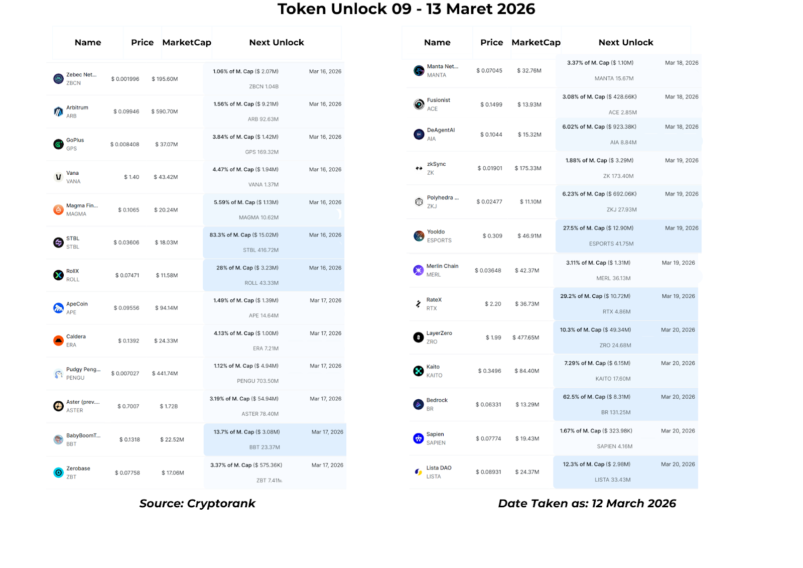Token Unlock (09–13 Maret 2026)