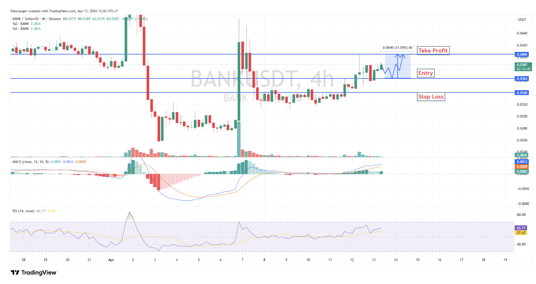 BANK/USDT berada dalam kondisi bullish continuation.