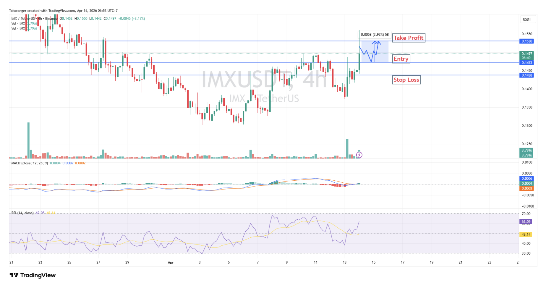 - Take Profit : $0.1530