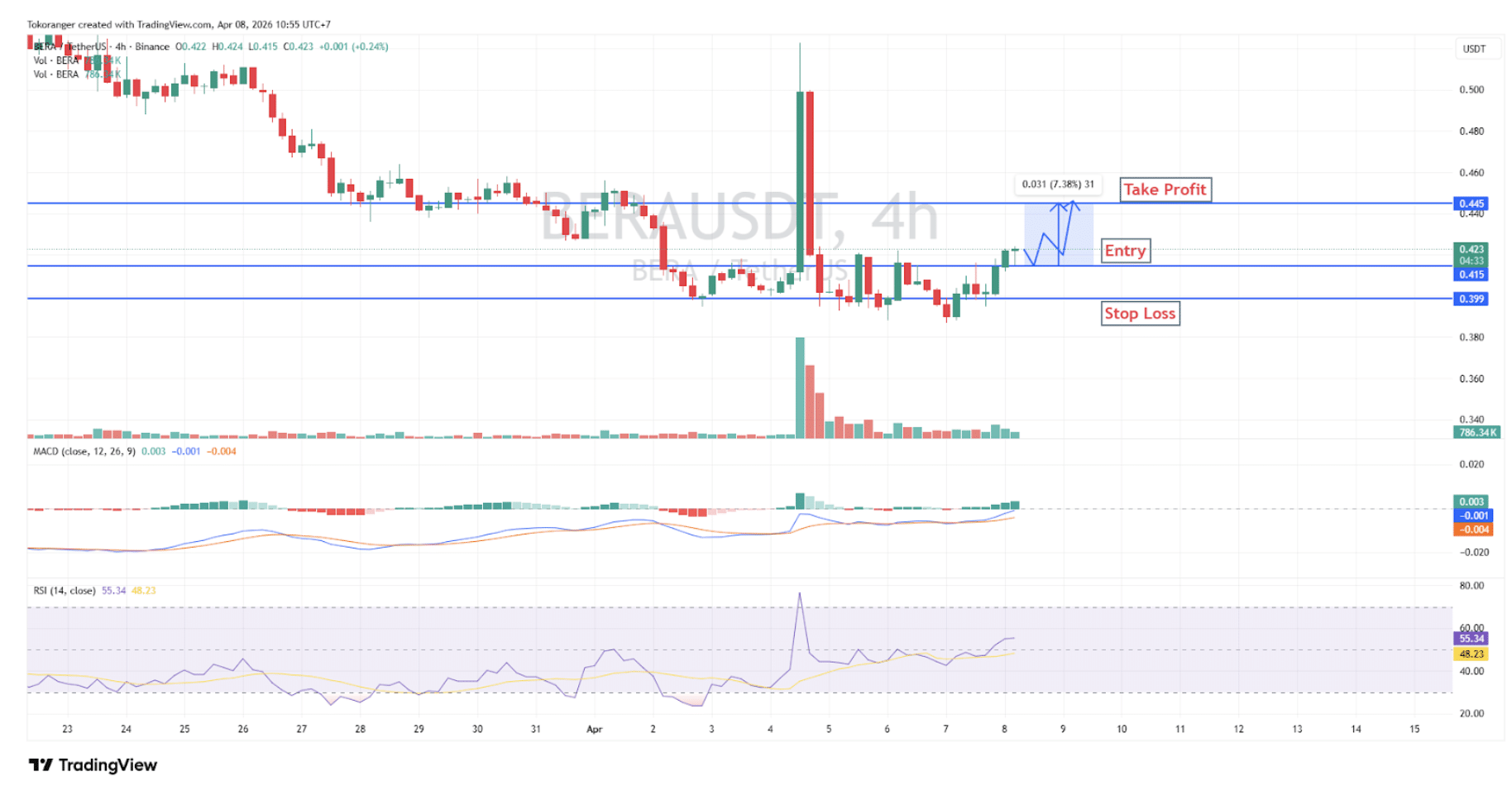 BERA/USDT saat ini berada dalam fase potensi bullish reversal jangka pendek.