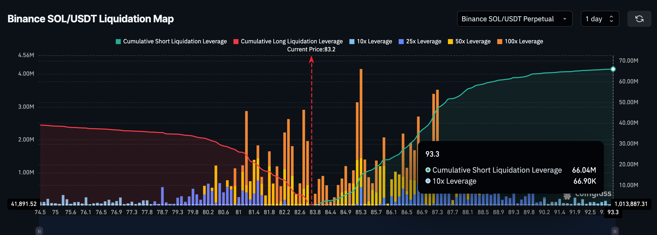 Data likuidasi menunjukkan sekitar 63% posisi leverage satu hari di Binance berada di sisi short. Nilai potensi likuidasi short mencapai sekitar US$66 juta, dibandingkan posisi long sekitar US$39 juta.