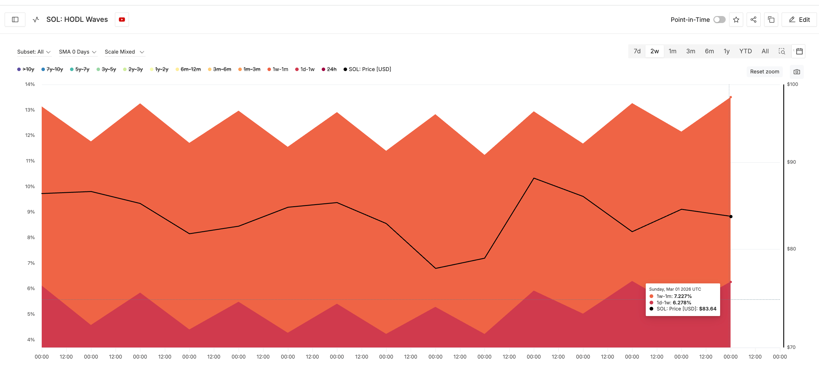 Level yang kembali menjadi penghalang adalah exponential moving average (EMA) 20 periode. Sejak akhir Januari, SOL beberapa kali gagal menembus garis ini. Satu-satunya penembusan bersih pada 25 Februari memicu reli sekitar 11%.