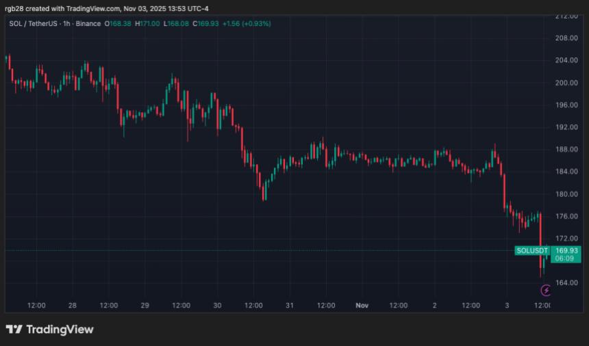 Koreksi yang dimulai sejak awal Oktober terus berlanjut. Saat Bitcoin juga terkoreksi ke $107.000, tekanan jual semakin berat dan menyeret SOL hingga ke $165, level terendah baru dalam beberapa bulan terakhir.