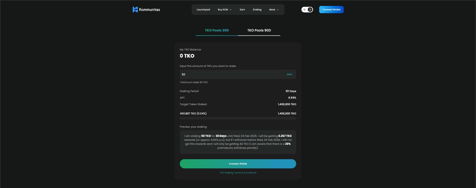 Persyaratan Minimum: stake minimal 50 TKO Token untuk memulai.