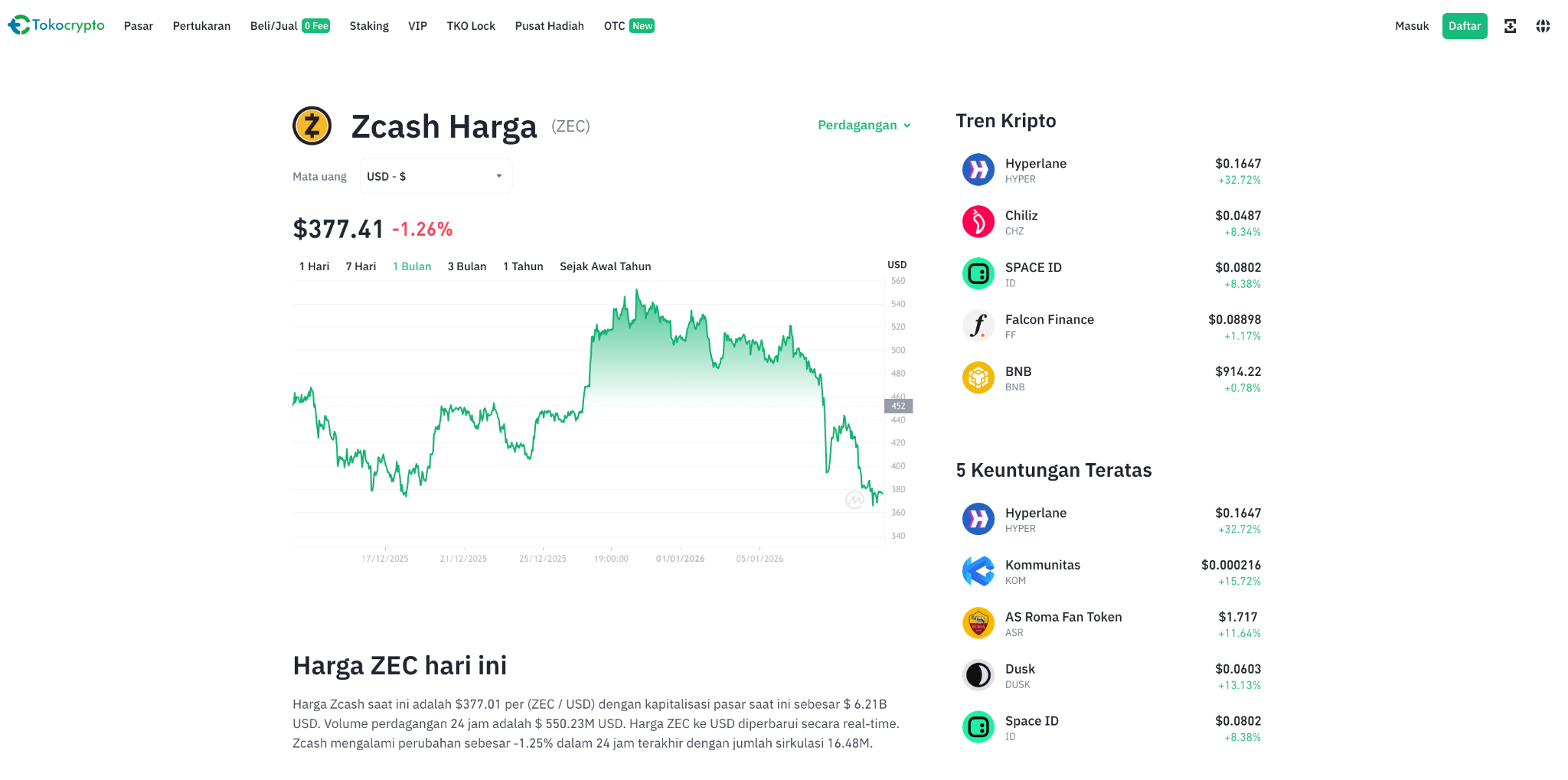 Tertarik dengan aset kripto Zcash? Trading atau investasi aset kripto Zcash bisa kamu mulai dengan deposit Rp50.000 aja lho! Dapatkan potongan 20% biaya trading selamanya dengan masukkan kode: TEMUTOKO saat melakukan pendaftaran Tokocrypto—download aplikasinya dan registrasi di sini!