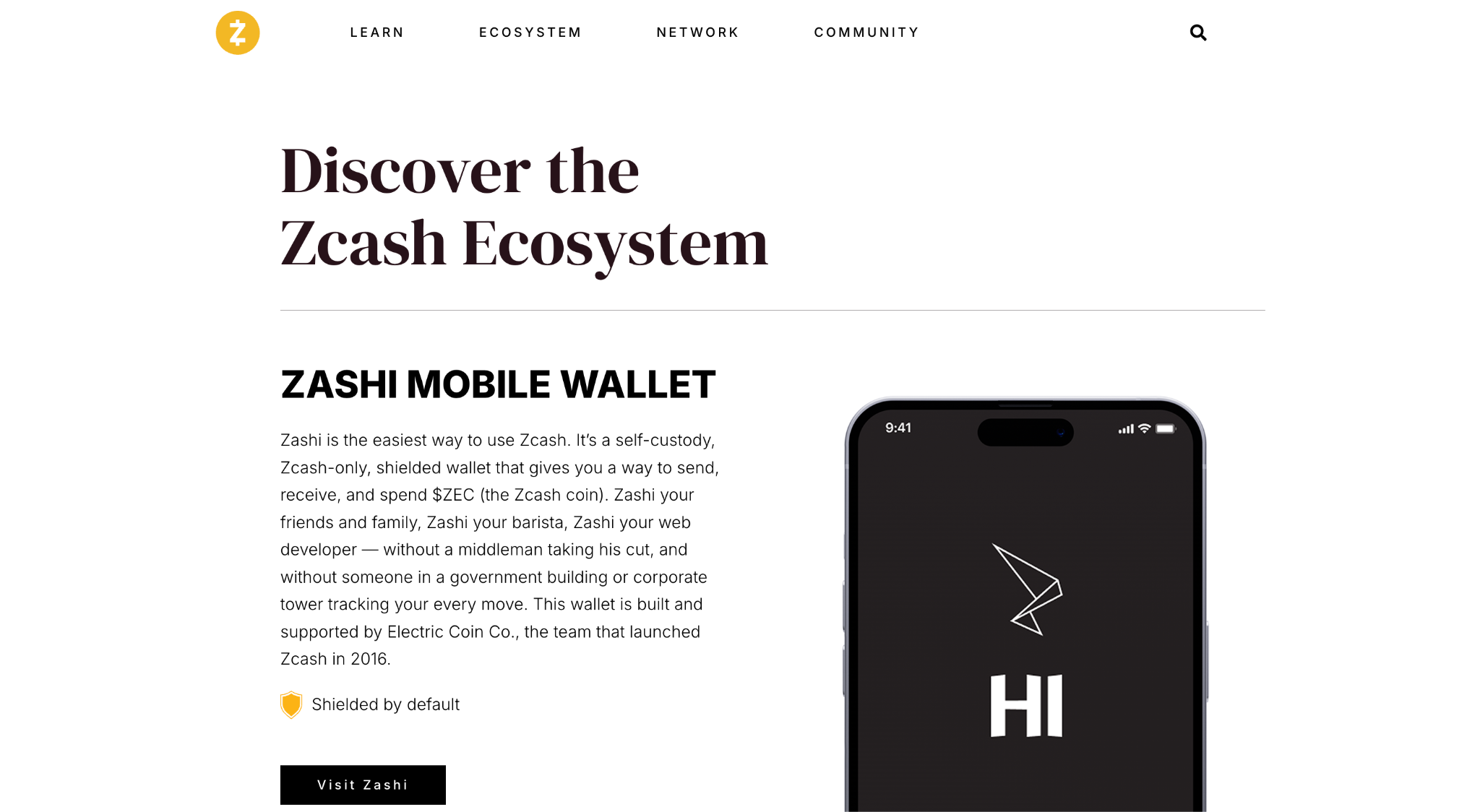 Wallet Zcash, Zashi mobile wallet. Sumber: z.cash