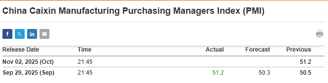 9.45 WITA – Caixin Manufacturing PMI Tiongkok