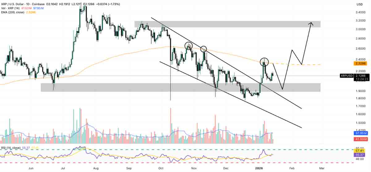 Prediksi Harga XRP: EMA 200 Hari Jadi Penentuh Arah Harga XRP